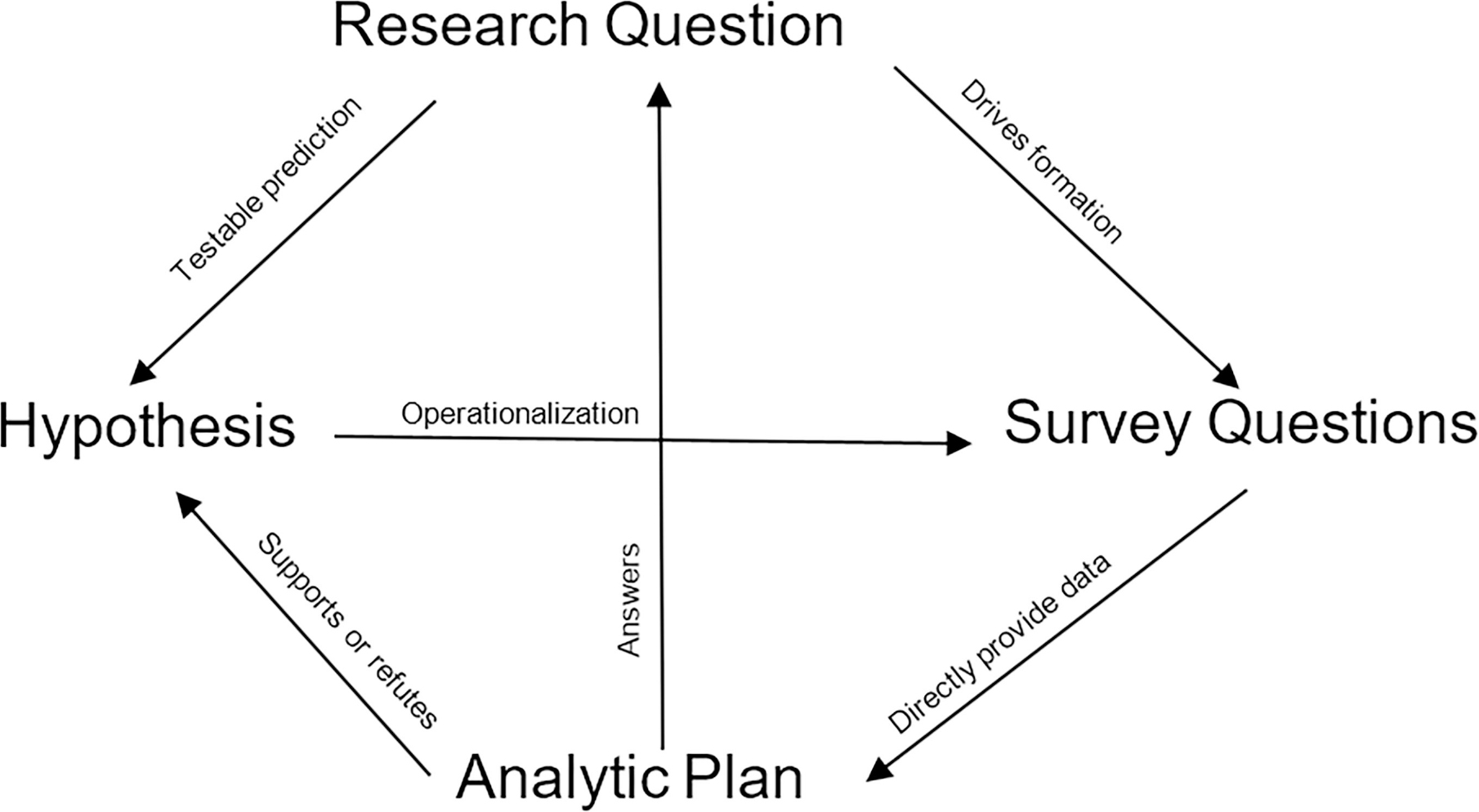 The next step is developing effective survey questions, which is often the most challenging step. Key elements of an effective research question include a closed-ended format, clarity, relevance, translation into the variables used in the hypotheses, and response options that are comprehensive yet simple.9 Questions framed as double negatives are discouraged. For example, “Chronic pain management is not necessary in a family medicine curriculum.” If the respondent disagrees, they disagree with the negative statement, which can be confusing and certainly fails the pajama test. Some respondents may misinterpret their personal alignment given the double negative. A more reliable survey question would be, “On a scale of 1–10 (10 being most important), how important is chronic pain management as a component of the family medicine curriculum?” Lastly, questions that would result in the respondent answering only “yes” or “agree” do not generate useful information. For example, “Chronic pain management should be included in the family medicine curriculum,” and the respondent can either “agree” or “disagree.” Few to no respondents would respond “disagree,” and thus, this question does not meet a research objective.
