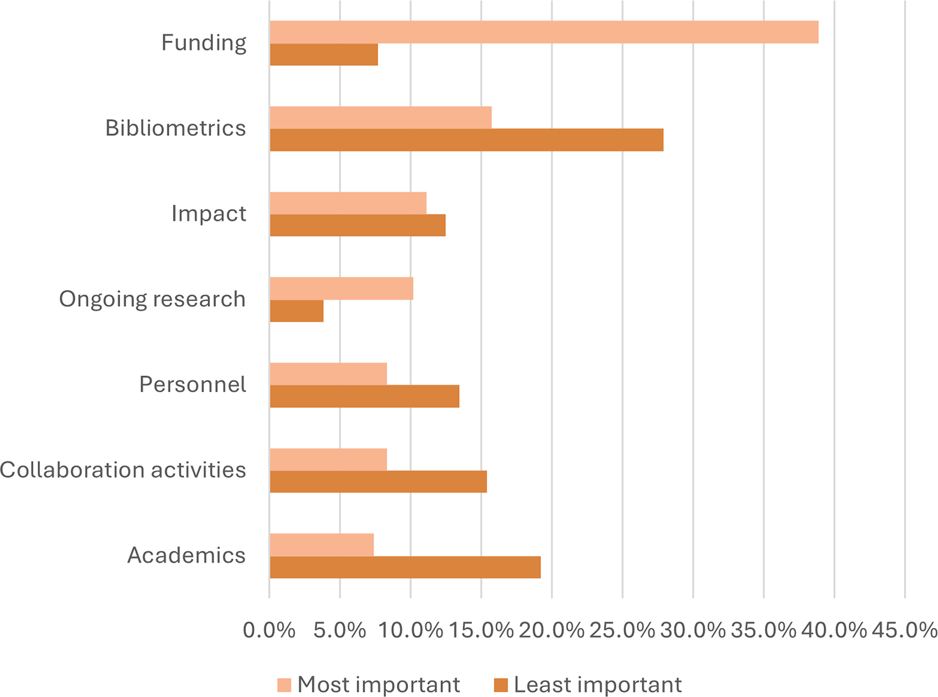 Funding, bibliometrics (25%) |