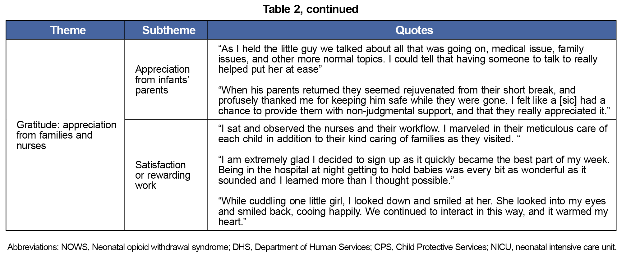 - Gummadi NH, D’Amico M, Chandra P, et al. Impact of cuddler service-learning program in medical student education of opioid use disorder in pregnancy and neonatal opioid withdrawal syndrome. Subst Abus. 2021;42(4):951-956. doi:10.1080/08897077.2021.1900983
