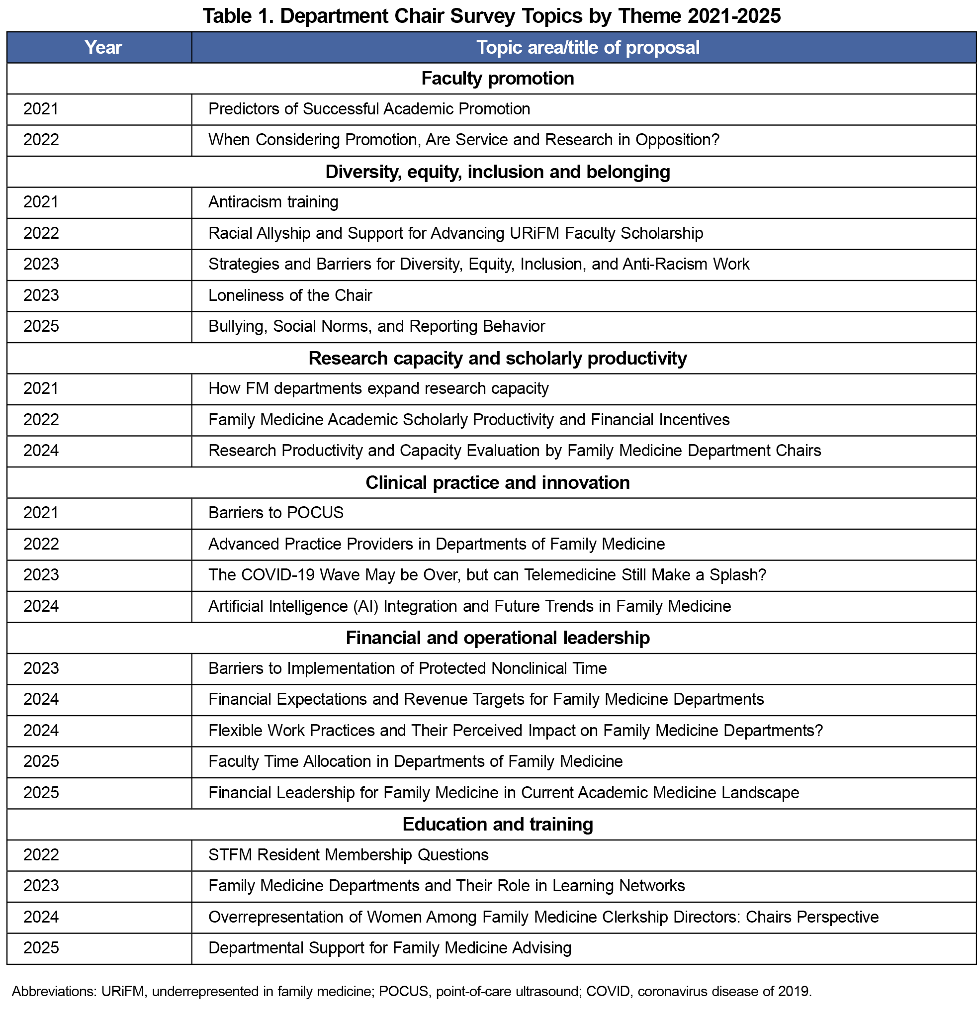 - Past Survey Data by Topic. Society of Teachers of Family Medicine. Accessed February 5, 2024. https://www.stfm.org/publicationsresearch/cera/pasttopicsanddata/pasttopiclist/